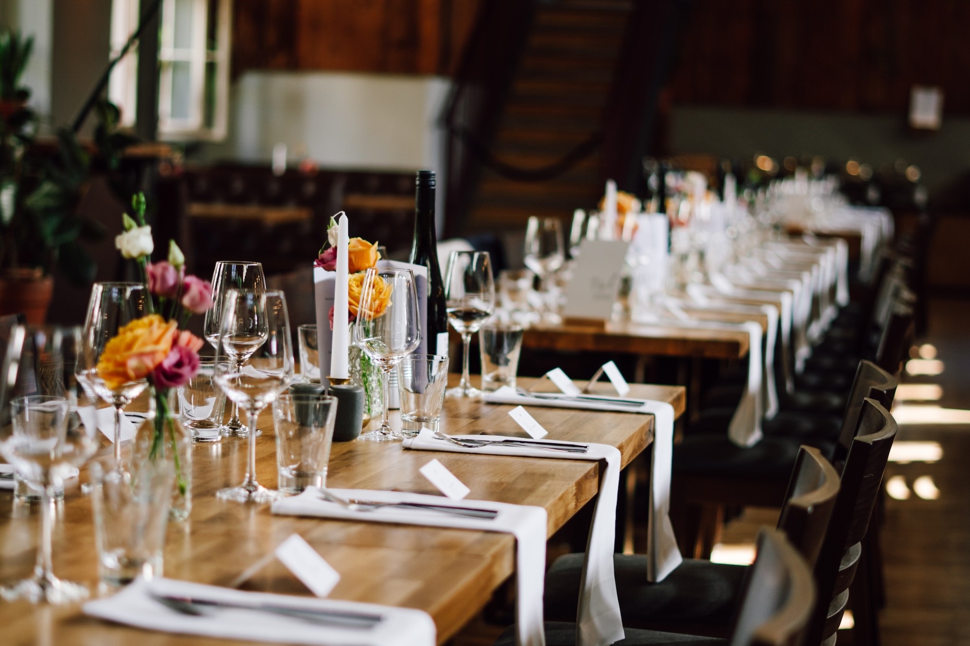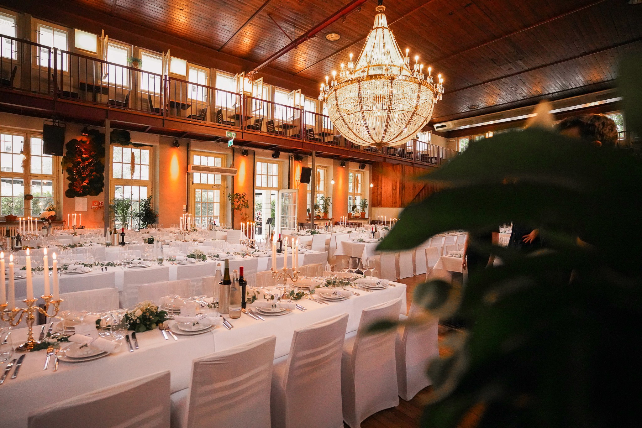 The small hall is ideal for smaller exclusive events. Through its own access, your event can be implemented here independently. With the partition wall, we adjust the hall to the exact size of your party.