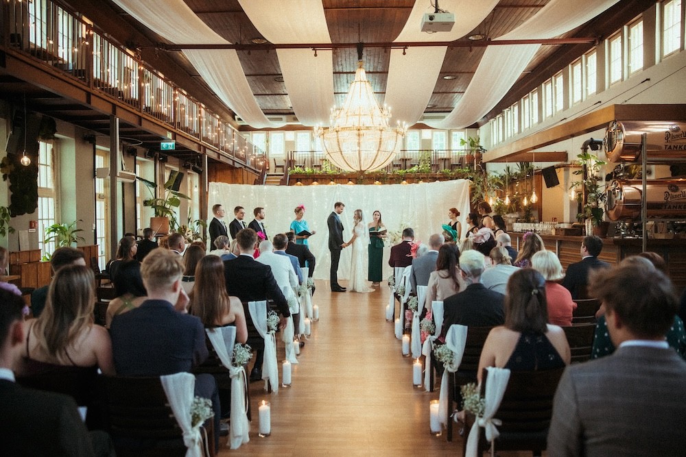 The Turnhalle, located in the middle of Berlin-Friedrichshain, offers flexibility as an event location and adapts to your individual needs through three different areas. Here you can either celebrate outdoors, both publicly and privately, in the summer garden (somewhat sheltered under large umbrellas) or indoors in the large and small halls. The former gym offers a wide range of design possibilities, whether for smaller group meetings of 50 guests or for unique and unforgettable celebrations with up to 450 guests.